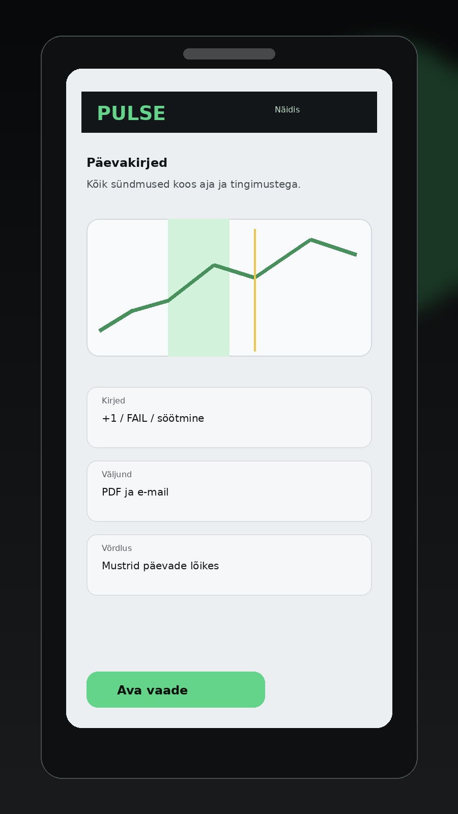 PULSE aitab siduda kellad, numbrid ja tulemuse ühte süsteemi. Nii hakkad nägema, millised tingimused korduvad enne võttu, millised muutused ei anna tulemust ja millal tasub järgmine kord kohal olla varem või hiljem.